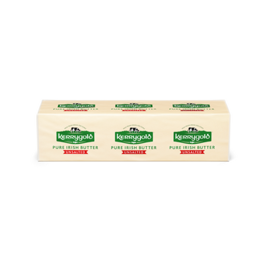 La mantequilla sin sal Kerrygold tiene un mayor contenido de grasa butírica y es perfecta para hornear. Notarás la riqueza de la leche de vaca alimentada con pasto al hornear por primera vez, y notarás que la masa de tus tartas queda más hojaldrada y tus galletas más deliciosas gracias a la mantequilla irlandesa pura.