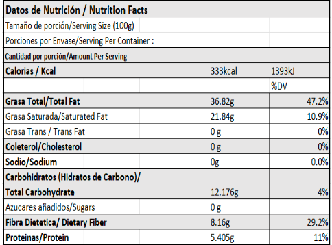 Presentación: 1 kg (empacado en bolsa al vacio con 3 barras de 333 g)